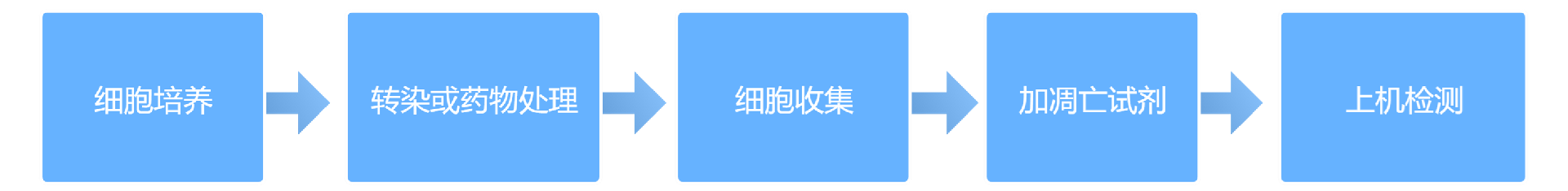AnnexinⅤ是一种分子量为35-36kD的Ca2+依赖性磷脂结合蛋白,能与细胞凋亡过程中翻转到膜外的PS高亲和力特异性结合。因此AnnexinV作为检测细胞早期凋亡的灵敏指标之一。将AnnexinⅤ进行荧光素FITC标记,以标记了的AnnexinV作为荧光探针,利用流式细胞仪或荧光显微镜可检测细胞凋亡的发生。碘化丙锭(PropidiumIodide,PI)是一种核酸染料,它不能透过完整的细胞膜,但对凋亡中晚期的细胞和死细胞,PI能够透过细胞膜使细胞核染红。因此将AnnexinV与PI匹配使用,就可以将处于不同凋亡时期的细胞区分开来。